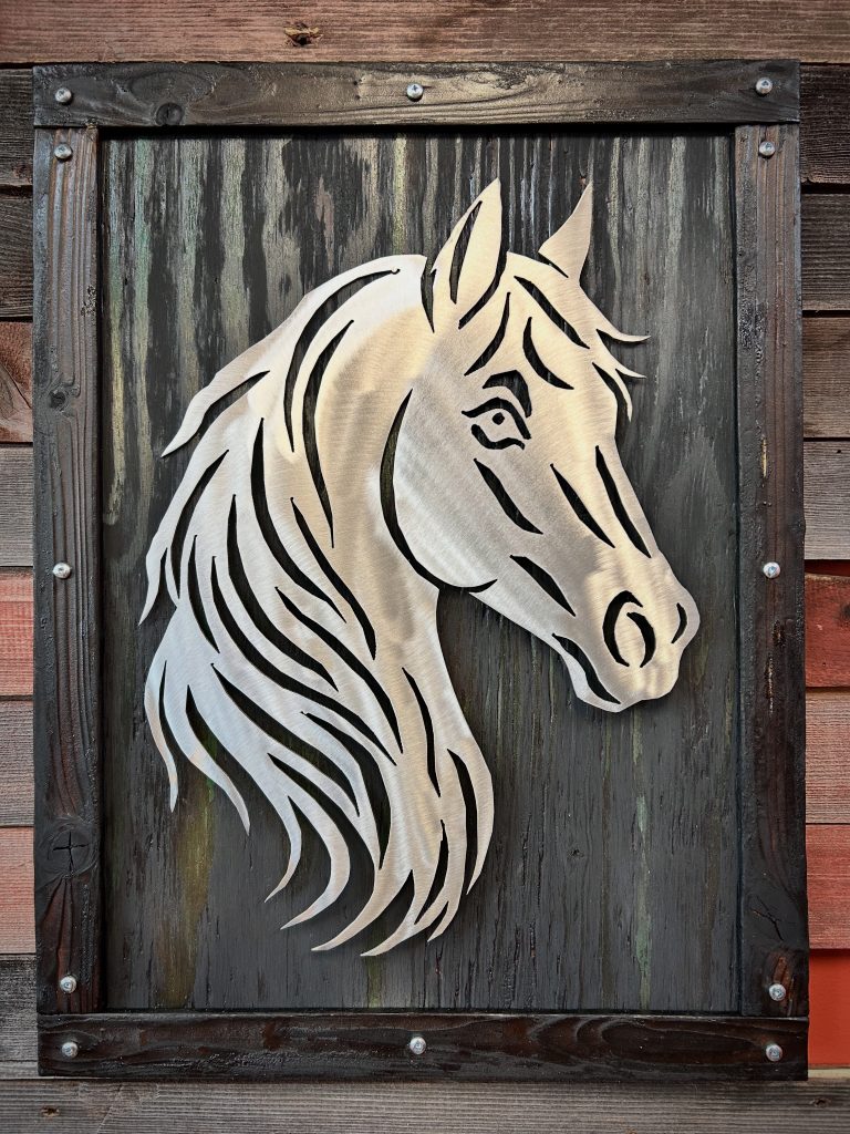 Variety of horse wall art I’ve created. Can come with a frame or without as well as painted, bare or rust patina