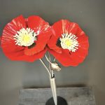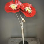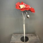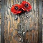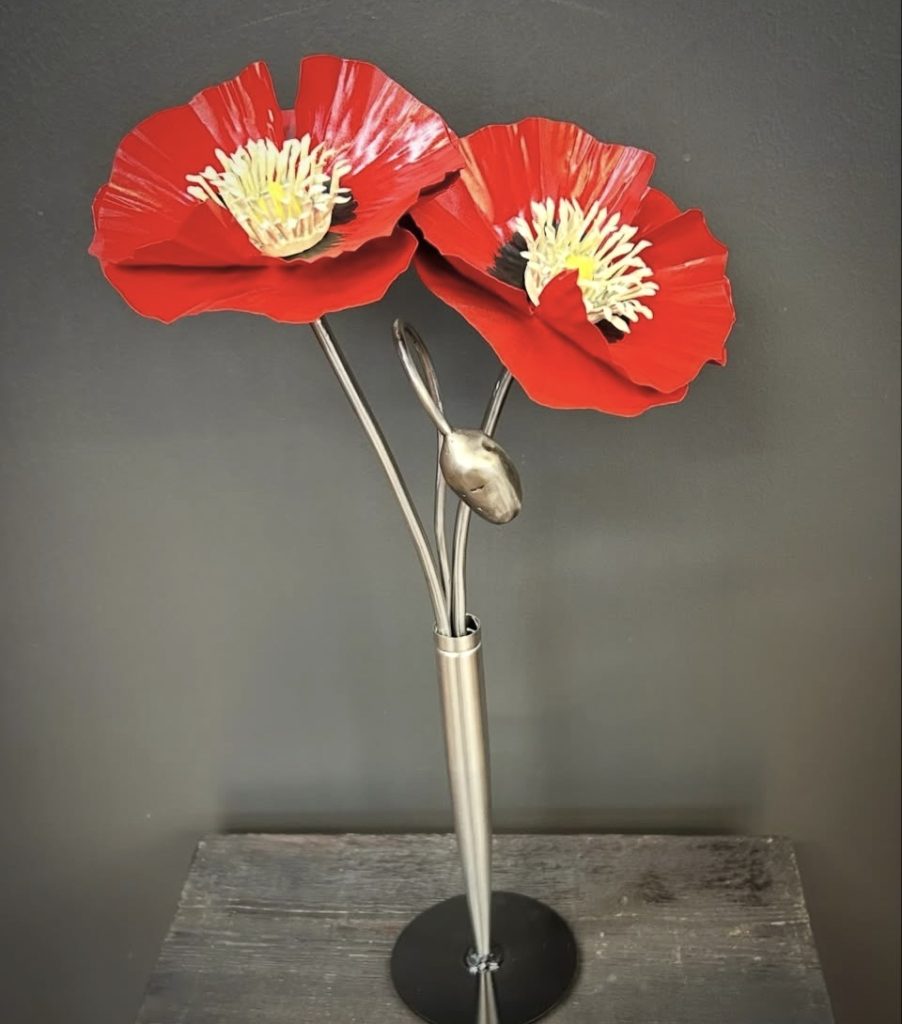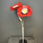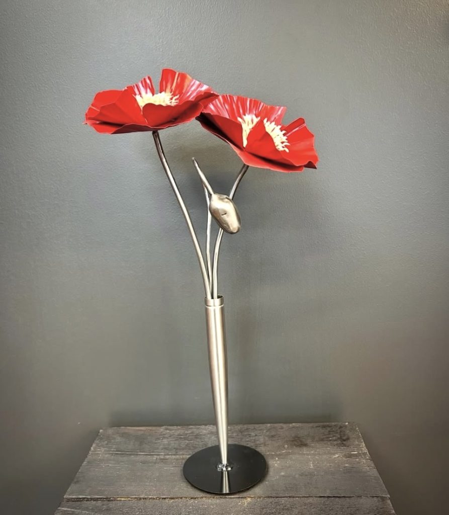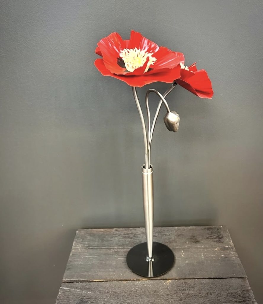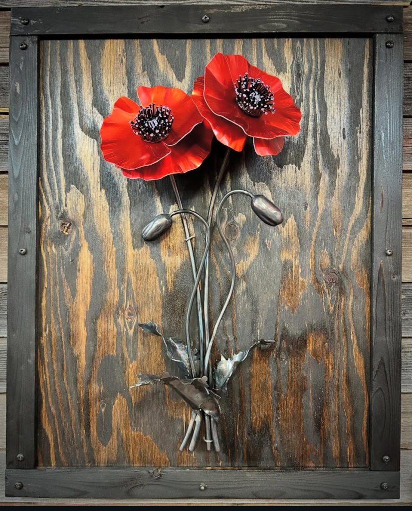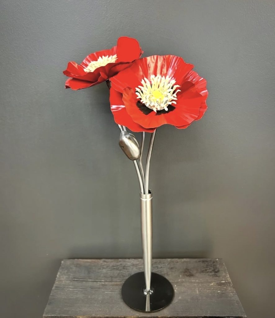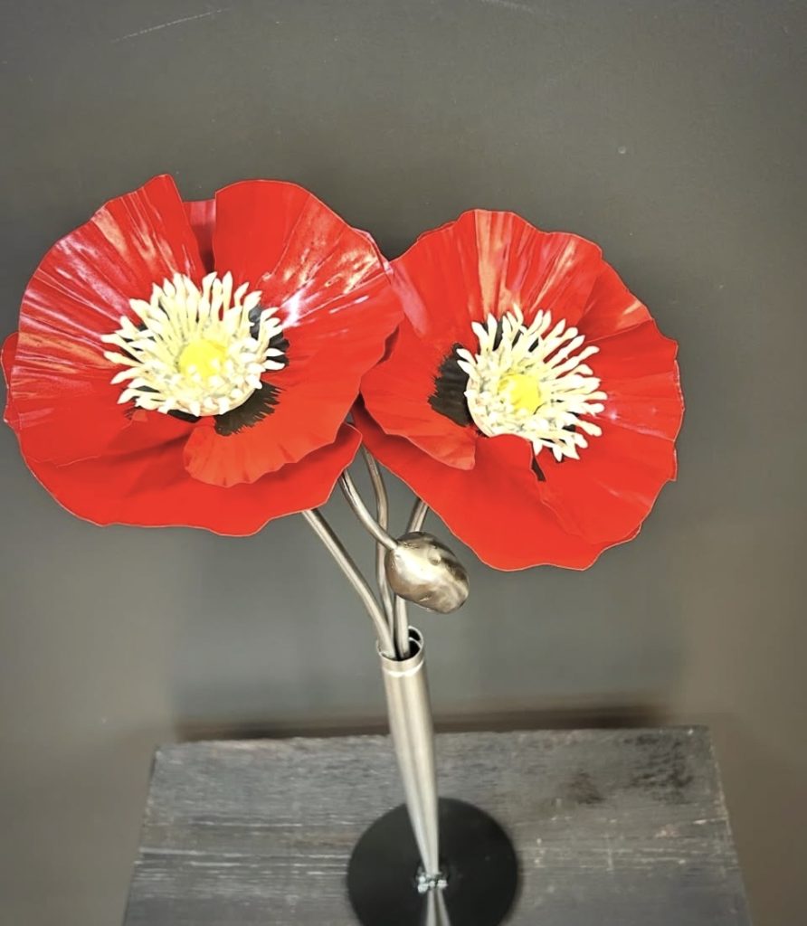Some anodized aluminum poppies , some painted aluminum . Built for wall and graveside memorials