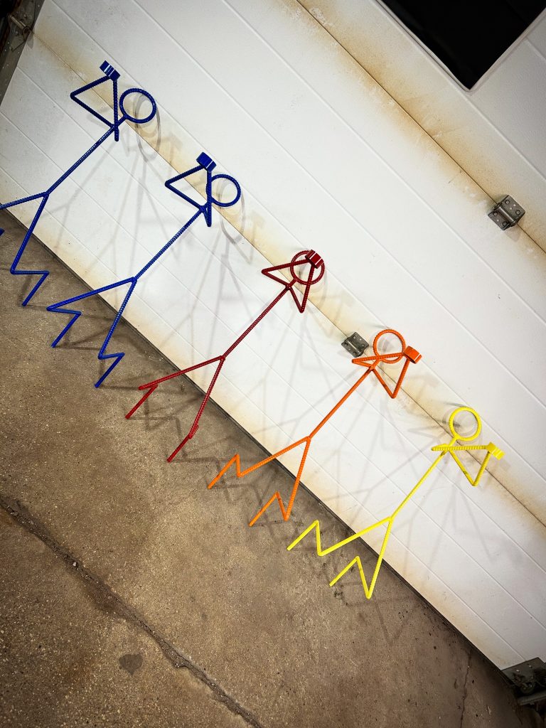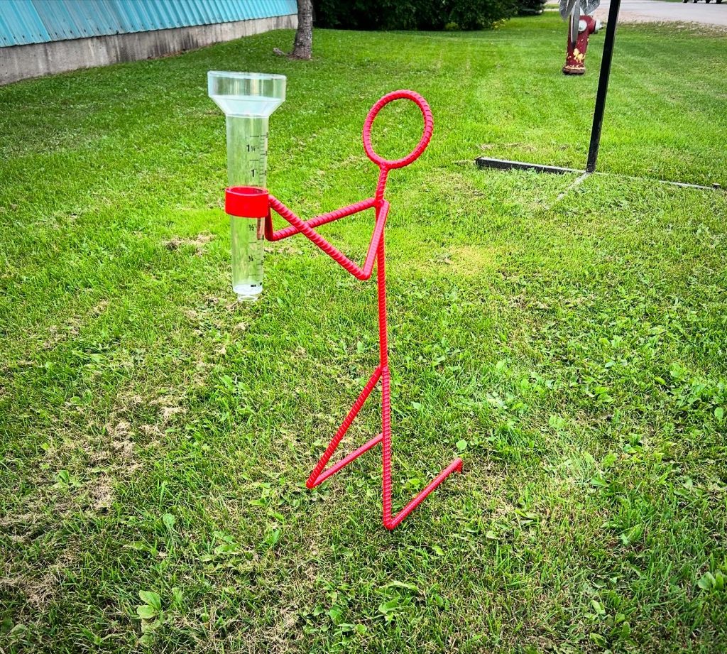 Holders made from rebar fashioned into a person holding up a rain gauge. Available in any colours you’d like. Just message to order!